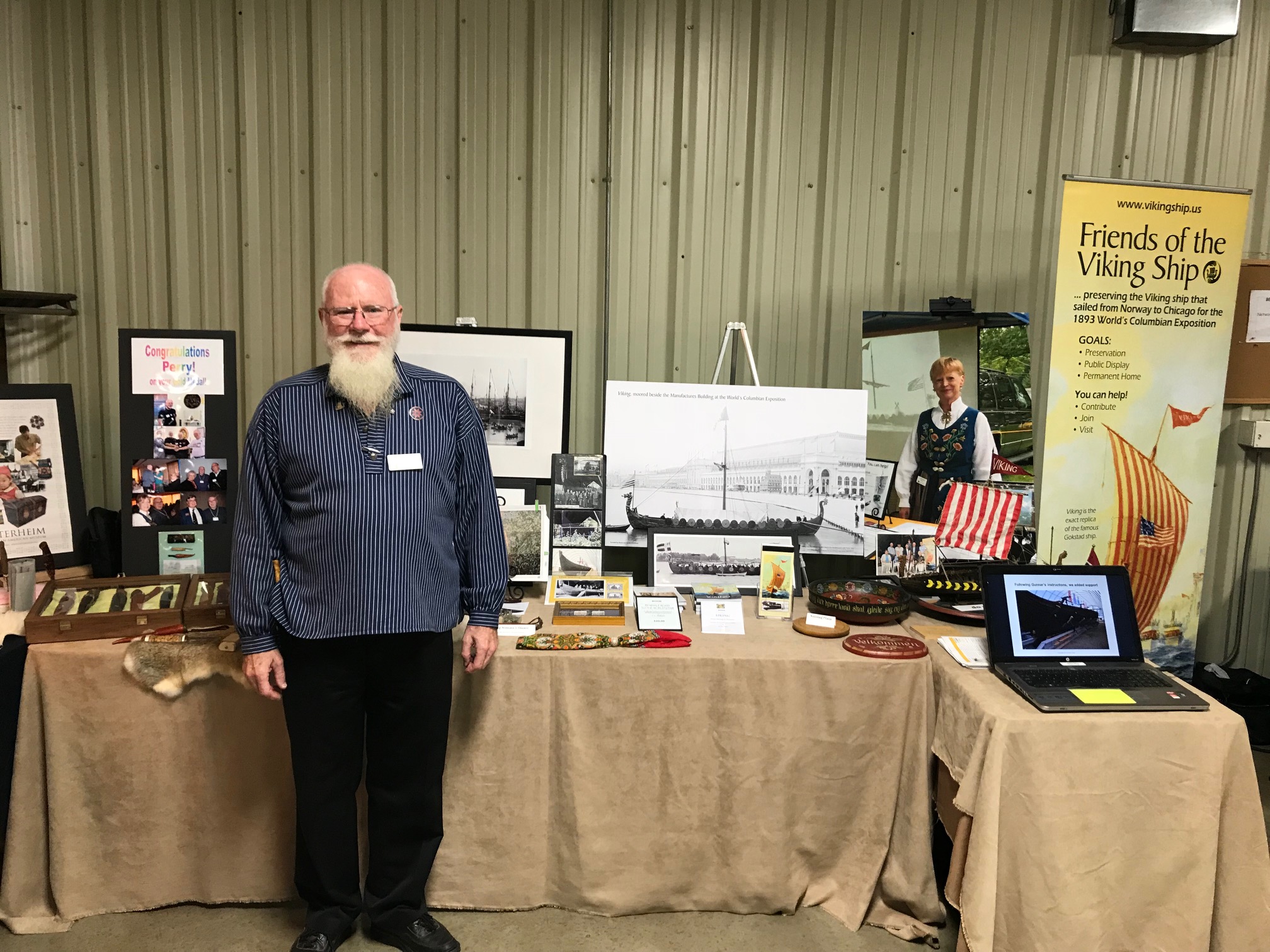 Vesterheim Gold-Medalist knife maker Perry Straw had a wonderful display of his beautiful creations. Additionally, Perry also represented the Friends of the Viking Ship and he took great pride in explaining this historically important ship.